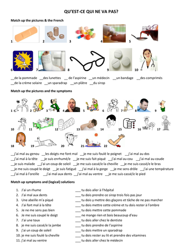 Les parties du corps : Aïe, j'ai mal au cou ! Alo docteur?j'ai mal au coeur.